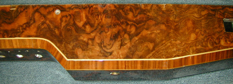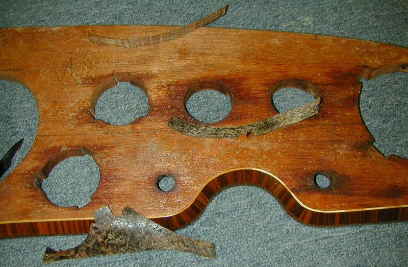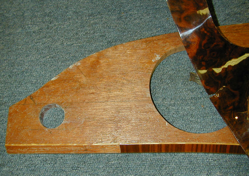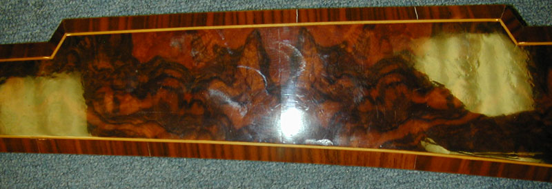 Here you can see more of that same problem. It was happening in small places everywhere. Before you read further, look at the veneer, inlay and crossbanding workmanship - it is done very nicely !! |