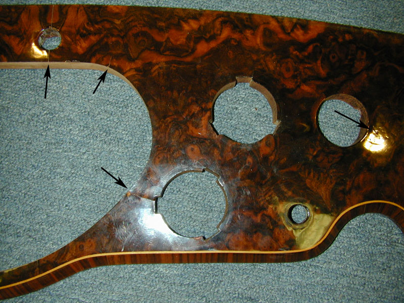 Here you can see more cracking and lifting. And, in the reflection on the right, you can see how the clear finish is having trouble. |
